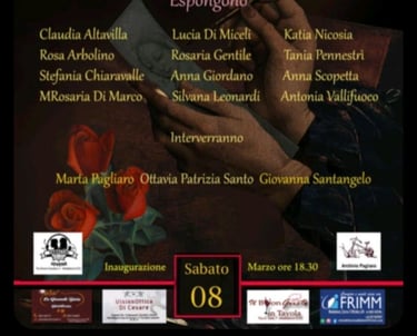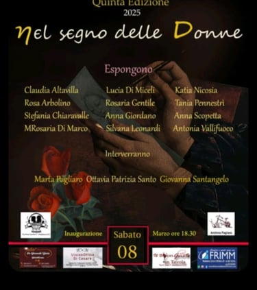 8 marzo - 18 marzo partecipazione su invito alla collettiva “Nel segno delle donne” organizzata da Studio il Castello Centro d’Arte, Corso I ottobre, Maddaloni, Caserta.