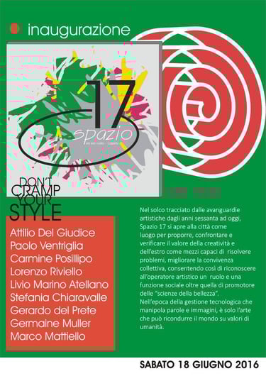 20-giugno-2016 Creazione di"SPAZIO 17"con altri 6 soci; Associazione Culturale di Arte e Divulgazione nel Comune di Caserta con all'attivo numerose mostre, reading e presentazione di libri